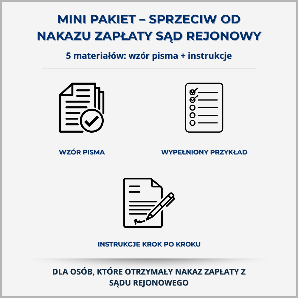 Ten mini pakiet to pierwszy i kluczowy krok obrony po otrzymaniu nakazu zapłaty z sądu rejonowego.