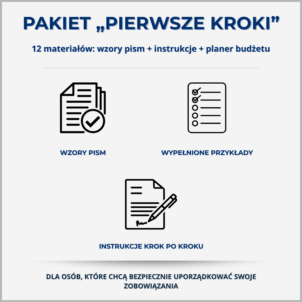 Pakiet „Pierwsze Kroki” został stworzony dla osób, które chcą uporządkować swoje zobowiązania — również te wynikające z pożyczek krótkoterminowych (tzw. chwilówek) — zanim pojawią się opóźnienia.