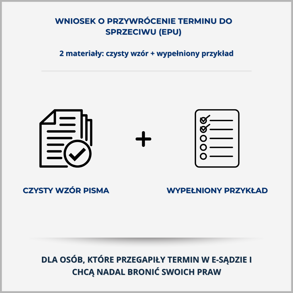 Jeżeli dowiedziałeś się o nakazie zapłaty z Elektronicznego Postępowania Upominawczego (EPU) dopiero po terminie na złożenie sprzeciwu, kluczowym pismem jest wniosek o przywrócenie terminu. Na jego podstawie sąd może otworzyć drogę do rozpoznania sprzeciwu, jeśli przekroczenie terminu nastąpiło bez Twojej winy.